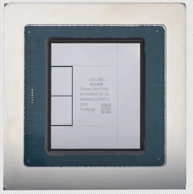 La puce Silicon One P200 affiche des performances réseaux importantes taillées pour les charges de travail IA. (Crédit Photo: Cisco)