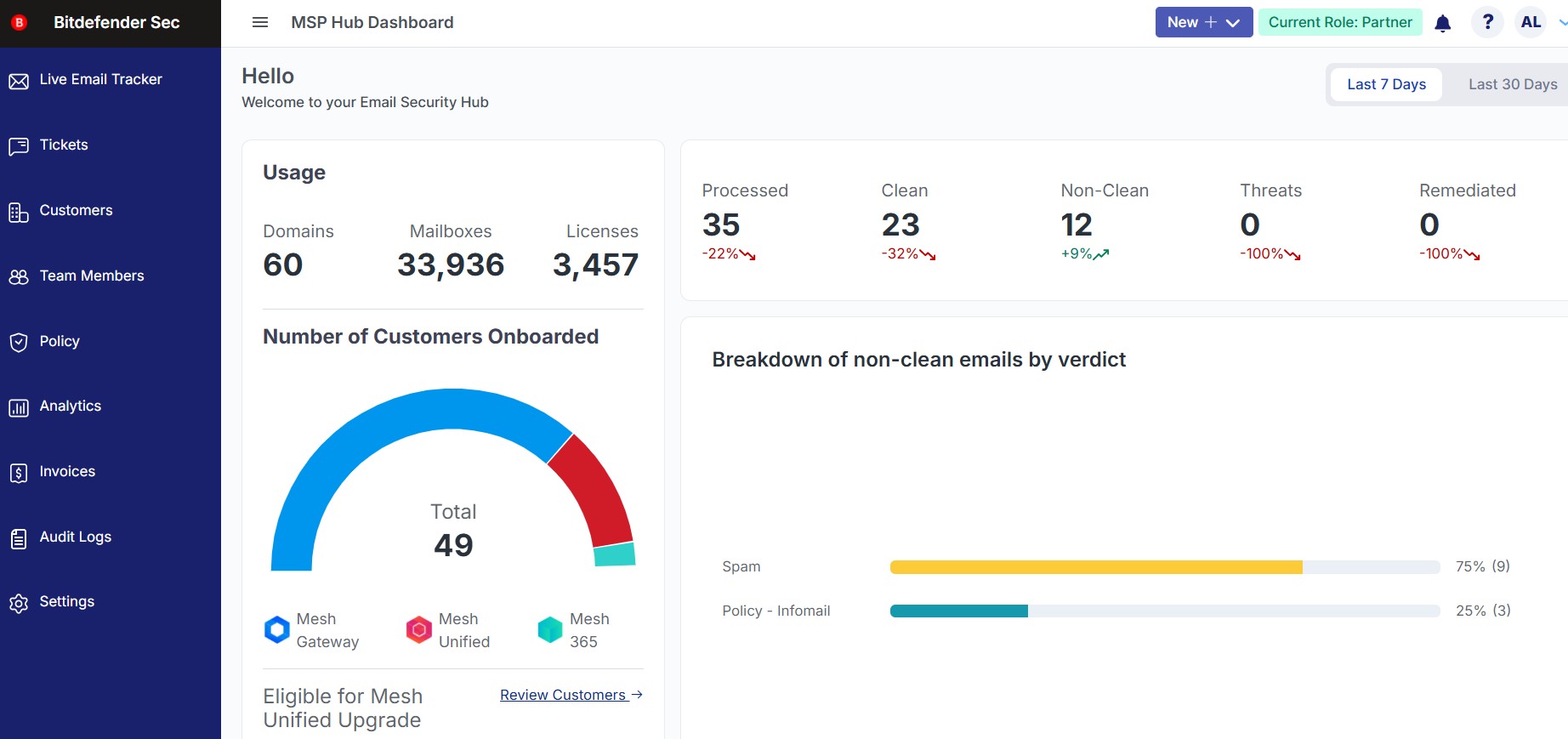 Les entreprises et les MSP bénéficient d'une visibilité unifiée via un tableau de bord. (Crédit Bitdefender)