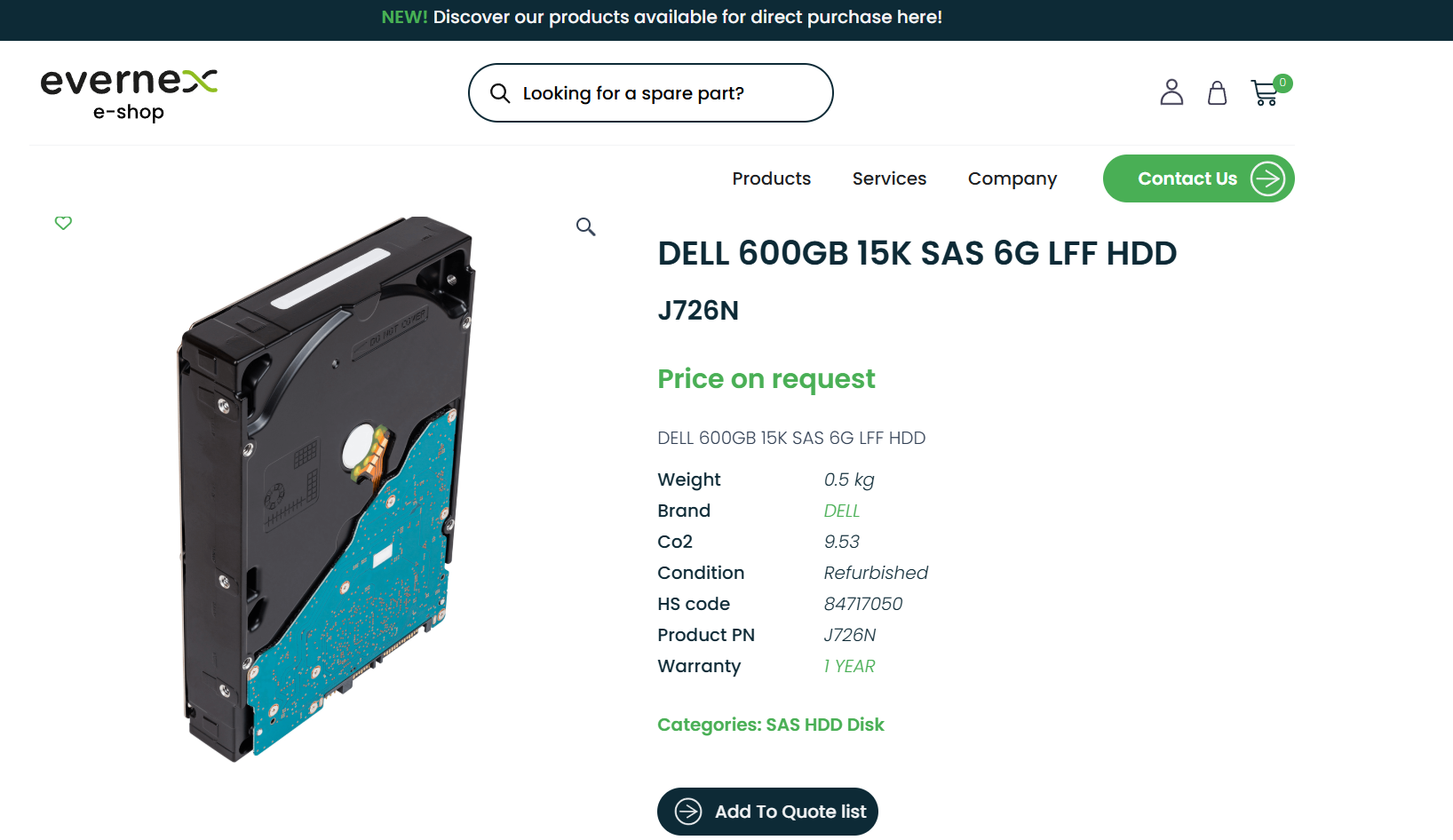 Après Econocom Factory, qui a créé son site marchand de matériels reconditionnés pour les professionnels en décembre dernier, c'est au tour du spécialiste français de la tierce maintenance Evernex de lancer son e-shop de produits reconditionnés. Sa plateforme d'e-commerce revendique déjà plus de 130 000 références dont 16 000 immédiatement livrables sous 72 heures au sein de l'Union européenne. Les entreprises peuvent donc acheter des serveurs, des composants (processeurs, mémoires, etc.) et diverses pièces détachées comme des disques durs par exemple ou des alimentations provenant de multiples constructeurs. Une garantie standard d'un an est proposée sur l'ensemble des produits, avec des extensions possibles à 3 ou 5 ans. Evernex promet que tous les produits sont testés et certifiés ; ils sont d'ailleurs accompagnés d'un rapport de test détaillé.