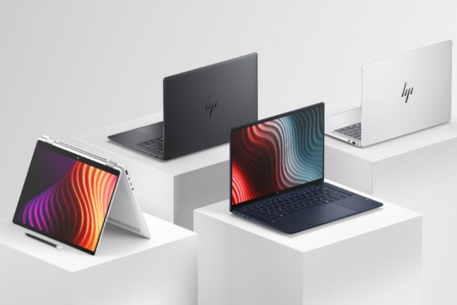 Au CES 2026, HP a présenté 3 modèles d'EliteBook X G2 embarquant des puces AMD, Intel et Qualcomm et un autre Flip (sur base Intel) avec une charnière 360 degrés. (crédit : HP)