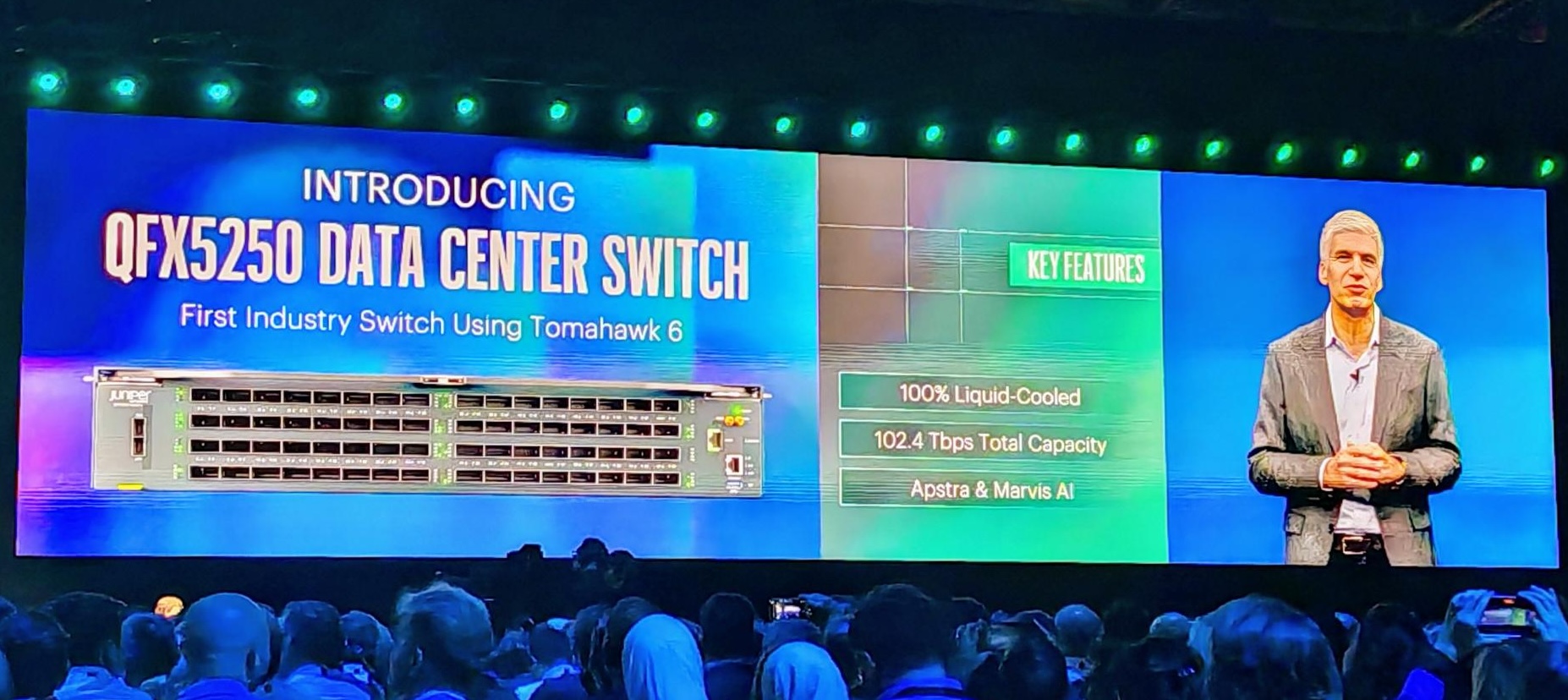 Le QFX5250 est présenté par HPE comme le switch Ethernet 1,6 Tbit/s par port le plus performant du marché, basé sur le silicium Broadcom Tomahawk 6 et conçu pour des environnements 800G/1,6T à très forte densité. (crédit S.L.)