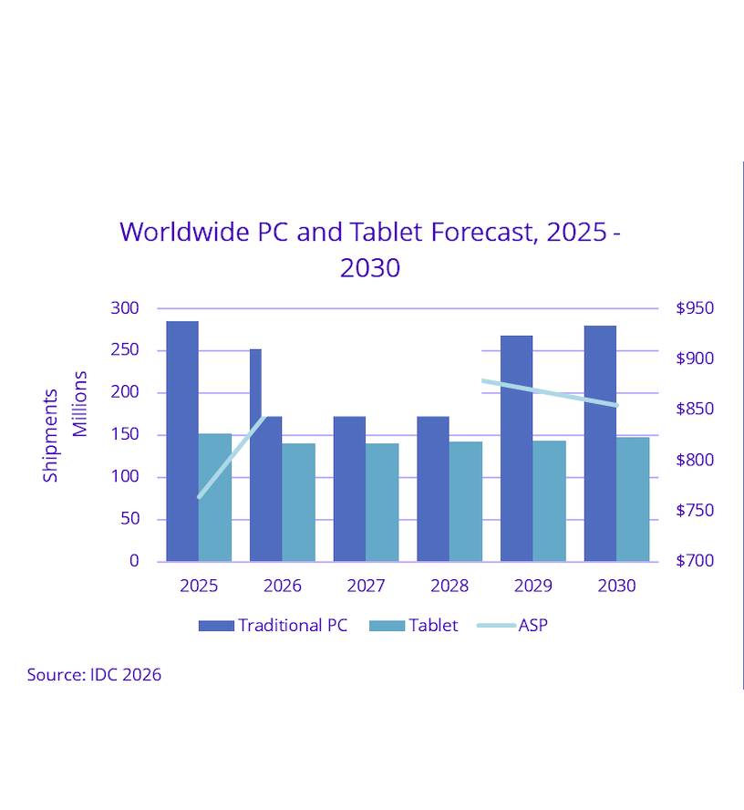 « L'ère des PC et tablettes à bas prix est révolue pour le moment, car la hausse des prix de vente moyens et du coût des composants modifie l'équilibre du marché », a déclaré Jitesh Ubrani, responsable de la recherche chez IDC pour le suivi mondial des terminaux mobiles. « Les pénuries de mémoire persisteront jusqu'en 2027. Bien que nous anticipions une légère baisse des prix à partir de 2028, il est peu probable que le marché retrouve les niveaux de prix de 2025. Nous prévoyons plutôt une nouvelle normalité caractérisée par des prix de vente moyens structurellement plus élevés et un ralentissement de la demande à long terme. »