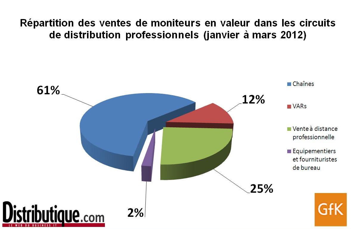 Le marché des moniteurs continue de sombrer. Entre janvier et mars derniers, le nombre d'unités vendues s'est établi à 244 300 unités, soit 7% de moins qu'au premier trimestre 2011. En valeur, le recul a atteint 6,36% à 39,7 M€ de chiffre d'affaires. L'an dernier à la même période, les ventes avaient déjà chuté de 5,8% en nombre d'unités et de 7,2% en valeur. Toute la baisse des ventes enregistrée cette année est imputable au recul des volumes commercialisés. Sur un an, le prix unitaire moyen des moniteurs est en effet resté stable à 162 €. Les parts de marché en valeur des revendeurs qui commercialisent des moniteurs auprès des entreprises n'ont pas vraiment évolué elles non plus. Les chaînistes sont restés largement dominants en s'adjugeant une part de marché de 61% entre janvier et mars 2012. De leur côté, les spécialistes de la VPC ont fourni 25% de l'ensemble des moniteurs vendus à la même période. Enfin, les VARS et les équipementiers/fournituristes de bureaux ont totalisé respectivement de 12% et 2% de parts de marché.